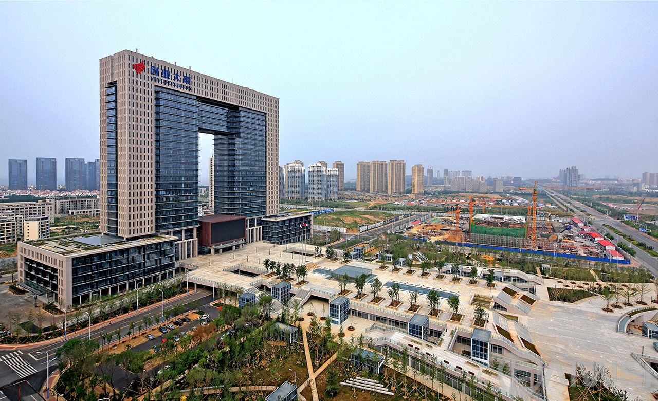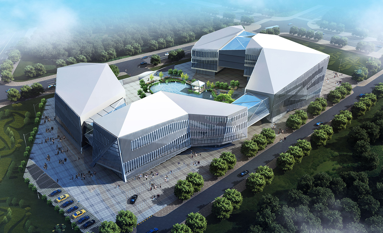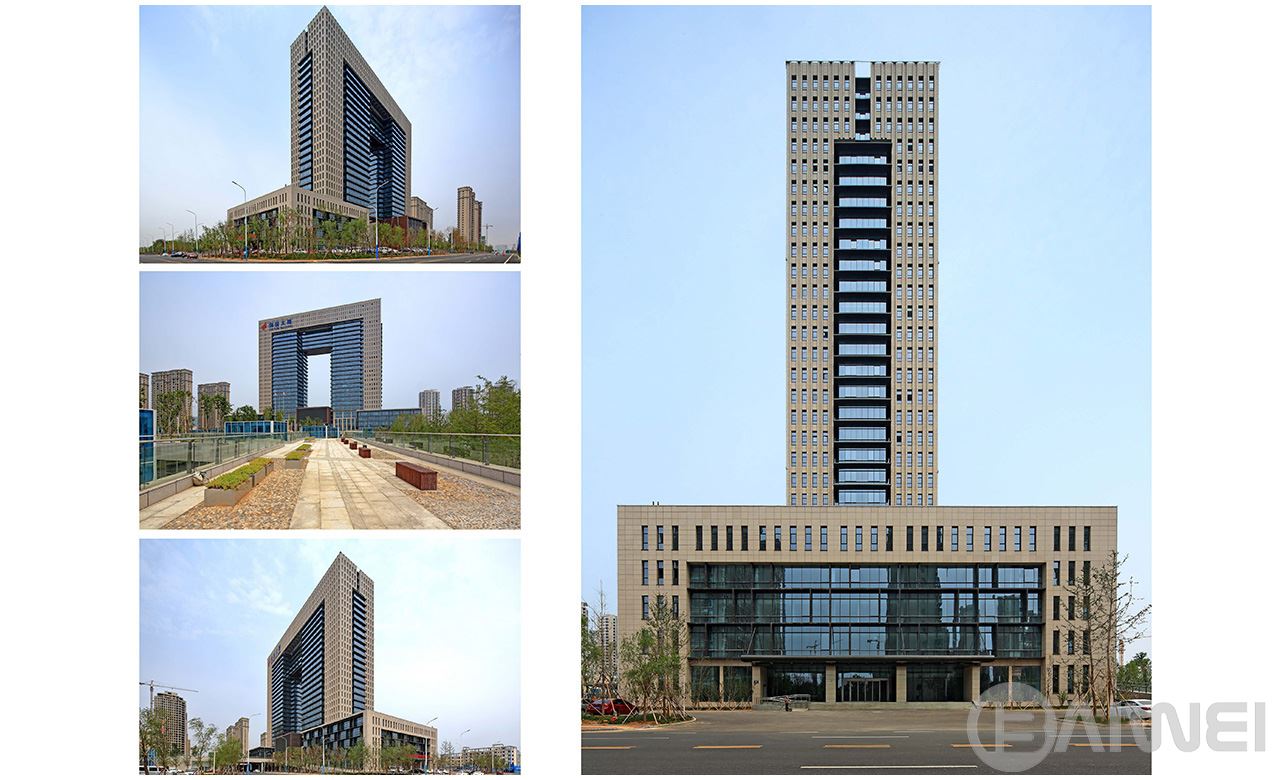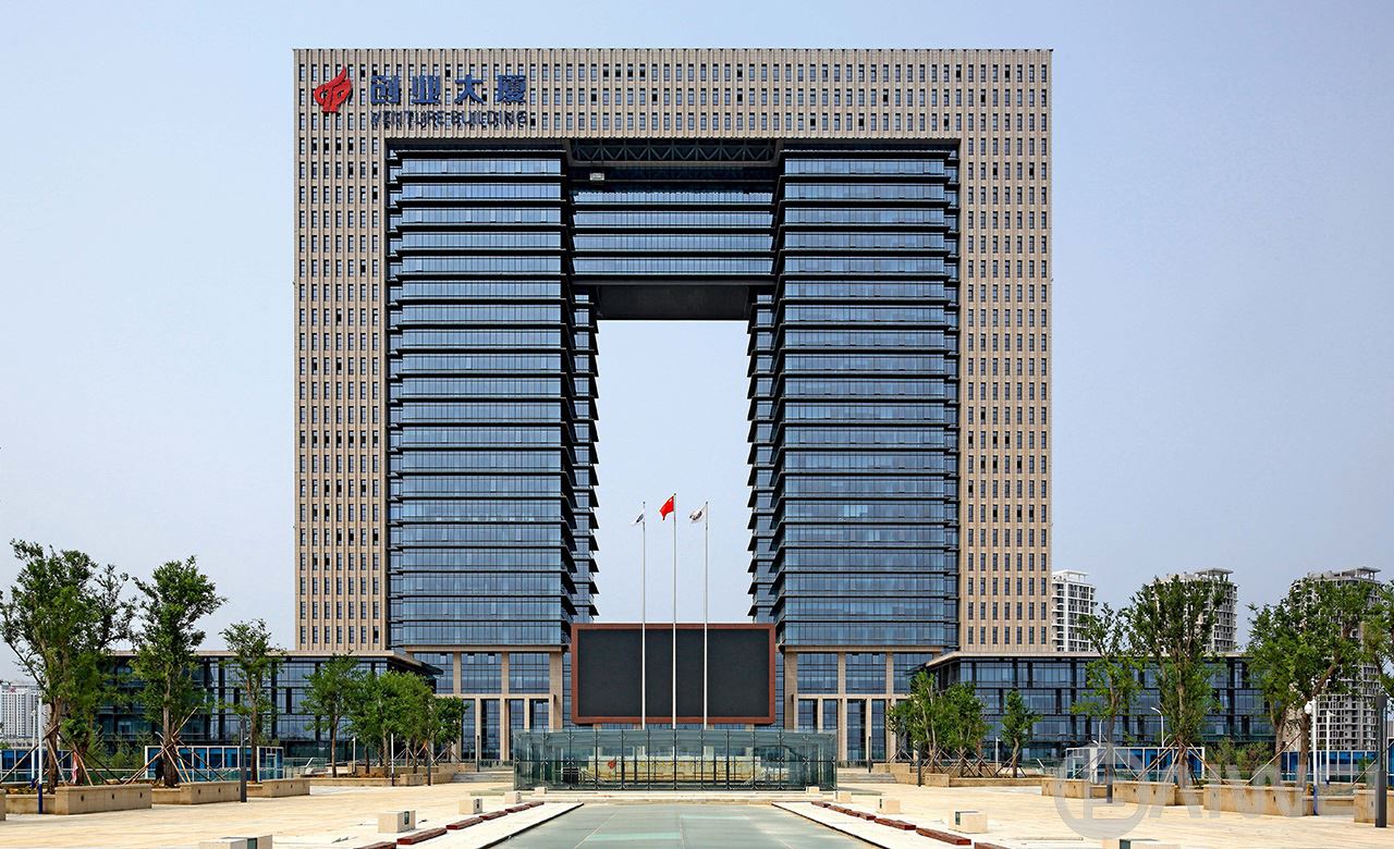 項目位于煙臺市煙臺CBD科技高新區(qū)的A區(qū),為高新園區(qū)重要核心建筑,兼顧高新區(qū)管委會辦公用房。規(guī)劃布局將其設(shè)置于核心景觀動力軸中心,是整個園區(qū)的點睛之筆。創(chuàng)業(yè)大廈設(shè)計突出“創(chuàng)業(yè)之門”的設(shè)計理念,整體建筑呈簡潔方整的“門”形。本工程結(jié)構(gòu)高度127.5米,地上建筑最高點為132.6米,為復(fù)雜高位大跨連體結(jié)構(gòu)。項目全方位引入綠色設(shè)計理念,在總圖布局、建筑單體的被動式能源利用、建筑節(jié)能設(shè)備、職能配套和建筑材料節(jié)能“空中花園”的辦公模式引入等多個角度,打造新時代的綠色辦公建筑。