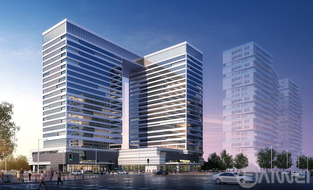 CBD中央商務(wù)區(qū)在立面、造型的建筑設(shè)計(jì)上,緊扣簡(jiǎn)潔高效的主題,以橫向線(xiàn)條為主,通過(guò)豐富又不失規(guī)律的變化讓建筑充滿(mǎn)了韻律感。建筑主體形體布局采用了L型雙塔布局也是做了充分的研討,這樣同時(shí)照顧到了206國(guó)道方向以及長(zhǎng)江路主干路的沿街面效果。
