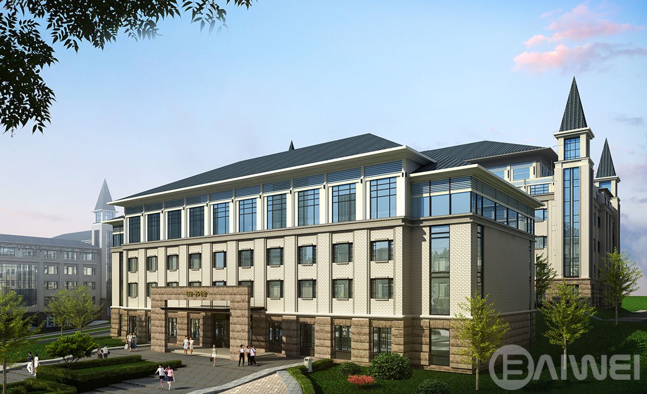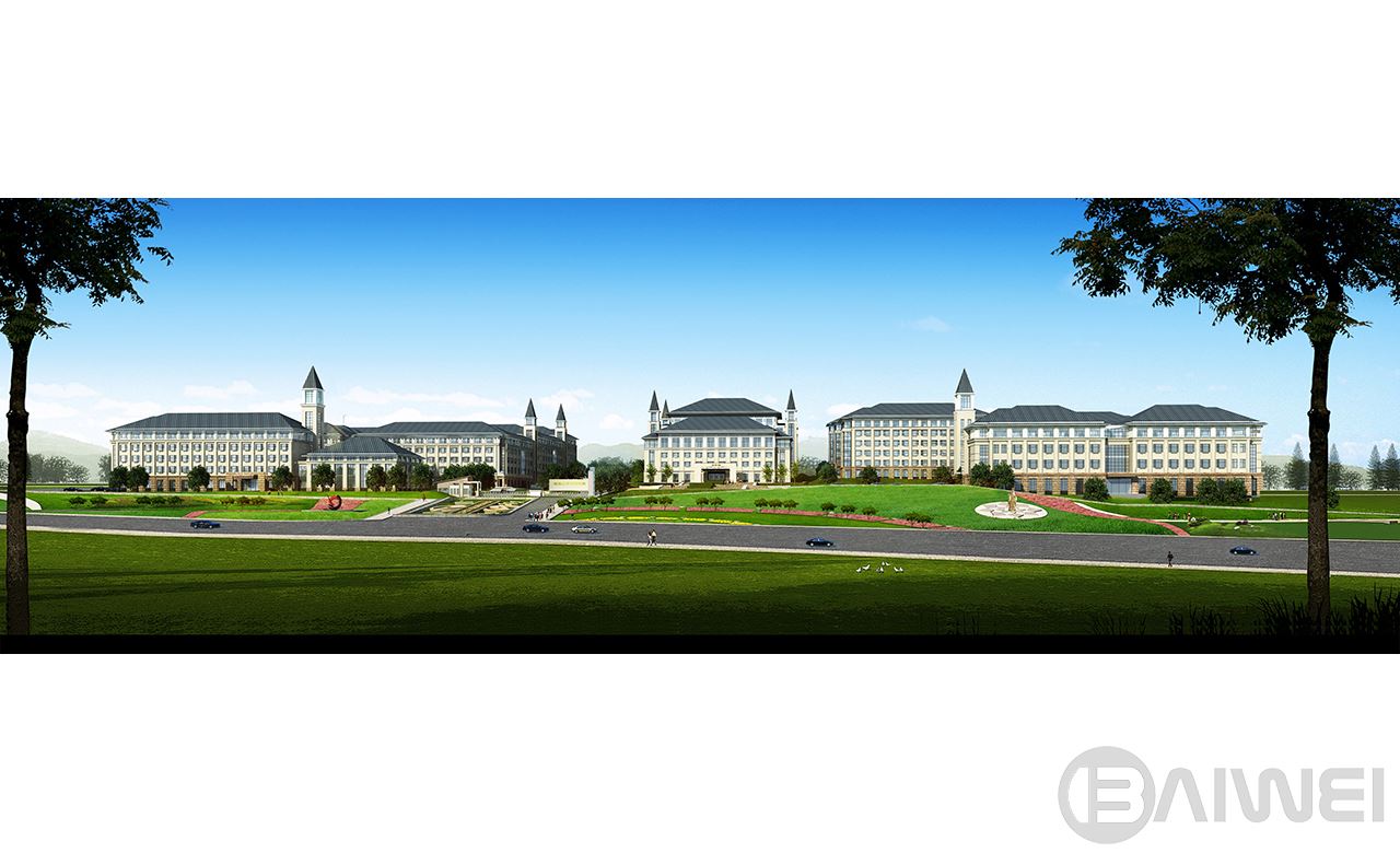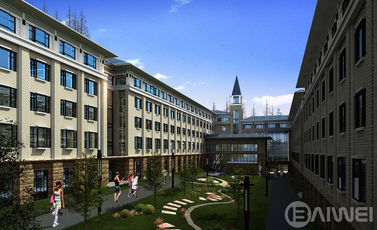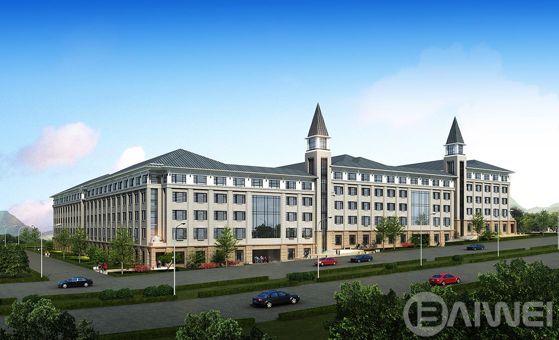 建筑依山勢(shì)展開,以共享向獨(dú)享漸變、喧鬧向安靜過渡為原則組織校園的功能布局結(jié)構(gòu)。建筑順山應(yīng)勢(shì),形成錯(cuò)落有致的屋頂輪廓;地勢(shì)高差變換的地方形成公共空間,以塔的形式將錯(cuò)落的建筑單體聯(lián)系在一起,自然而然成為統(tǒng)一中的變化,豐富了立面造型空間感覺,起到畫龍點(diǎn)睛的作用。整個(gè)群體包括教學(xué)樓、宿舍樓、行政辦公、食堂、圖書館、實(shí)訓(xùn)樓、教工公寓等使用功能不同的建筑,在坡屋頂,三段式的立面組織形式,以及紅、灰、黑、白的色調(diào)搭配下,與周圍山地環(huán)境相互輝映滲透,描繪了一幅協(xié)調(diào)完整、含蓄內(nèi)斂的水墨風(fēng)情畫。