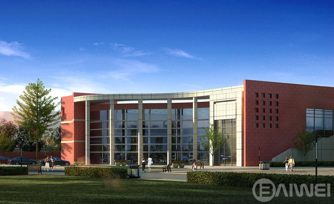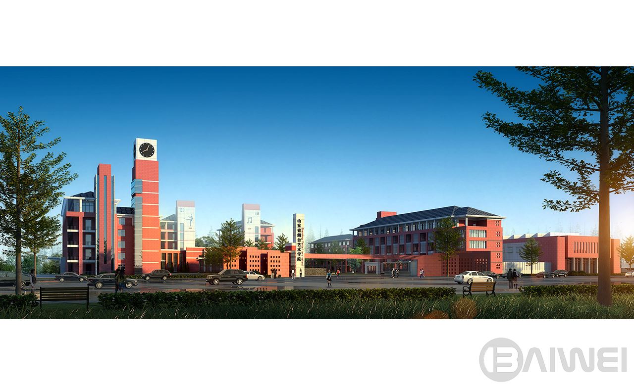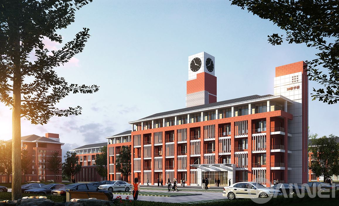 本項(xiàng)目位于煙臺(tái)市高新區(qū),包括靜區(qū)教學(xué)辦公樓,綜合教學(xué)樓,學(xué)生宿舍兩棟,餐廳,6棟專業(yè)教研樓,實(shí)驗(yàn)劇場??傮w布局上,充分考慮校區(qū)的合理分區(qū)建設(shè)。建筑分布在南北方向校內(nèi)主干道兩側(cè),合理組織各功能分區(qū),教學(xué)生活功能分區(qū)明確。整體布局合理,涼席方便,動(dòng)靜分區(qū)額明確,互不干擾,為學(xué)生創(chuàng)造一個(gè)安靜舒適而又方便的學(xué)習(xí)生活空間。主入口設(shè)在校區(qū)的東側(cè)規(guī)劃路23號(hào)方向,一起綜合教學(xué)樓作為學(xué)校的中心建筑,入口與中心建筑之間形成廣場和中心綠化帶。建筑整體采用現(xiàn)代式,整個(gè)建筑群高低錯(cuò)落,層次分明,以辦公樓鐘樓作為建筑群制高點(diǎn),統(tǒng)領(lǐng)整個(gè)建筑群。建筑以哈弗紅色調(diào)為主,搭配適度白色。建筑構(gòu)件細(xì)節(jié)豐富,在細(xì)節(jié)部分充分體現(xiàn)藝術(shù)學(xué)校的特點(diǎn),給在校師生創(chuàng)造一個(gè)術(shù)士積極的教學(xué)環(huán)境。