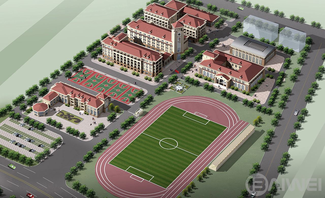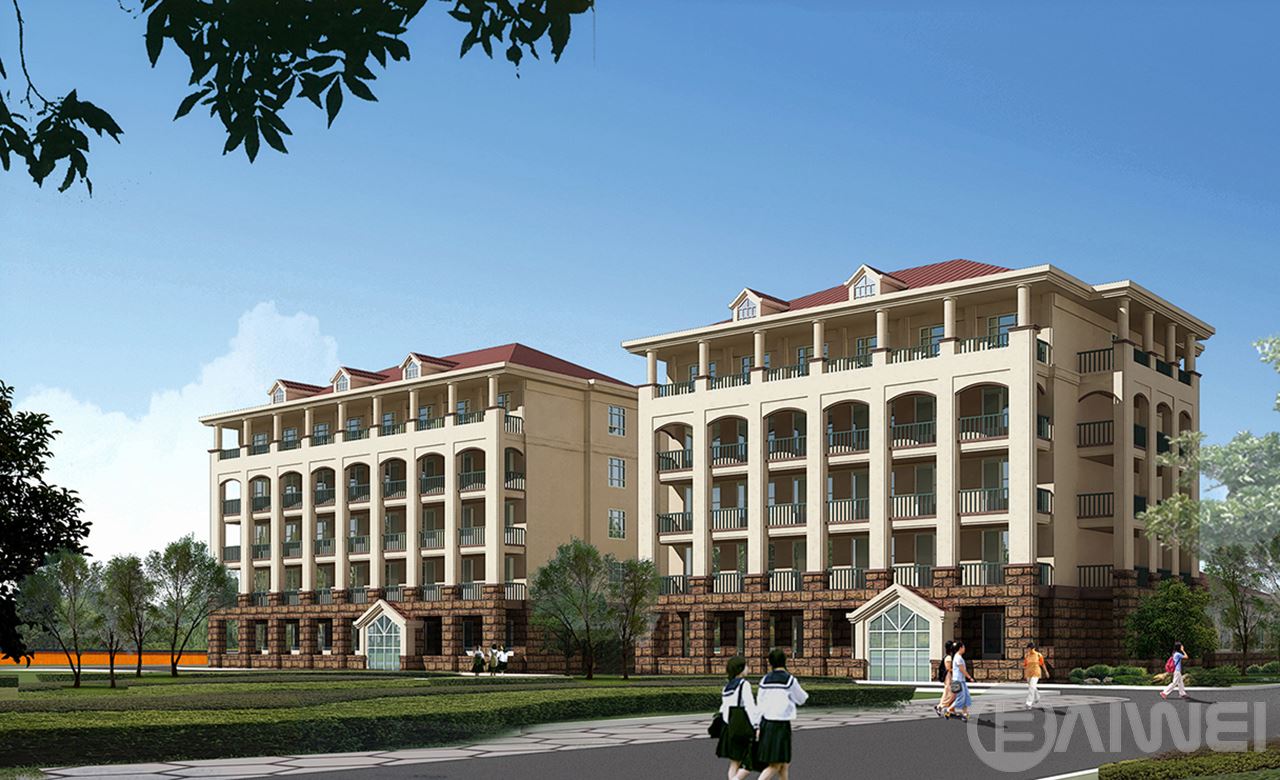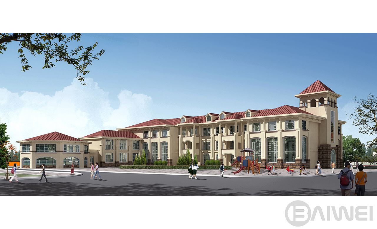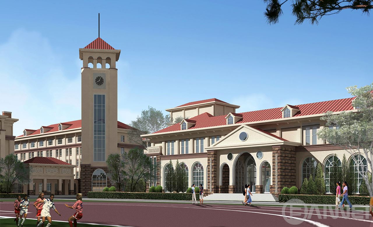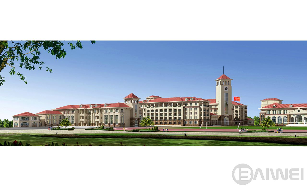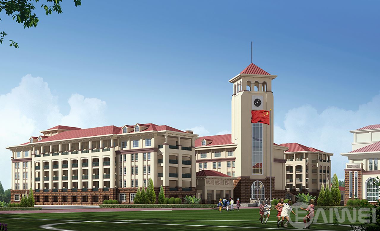 項(xiàng)目位于煙臺市萊山區(qū),共包括中學(xué)教學(xué)樓,辦公樓,小學(xué)教學(xué)樓,活動中心,學(xué)生宿舍兩棟,餐廳,風(fēng)雨操場,教室單身宿舍兩棟。學(xué)校共42個班,其中小學(xué)18個班,中學(xué)24個班。建筑整體采用歐式風(fēng)格,整個建筑群高低錯落,層次分明,以辦公樓鐘樓作為建筑群制高點(diǎn),統(tǒng)領(lǐng)整個建筑群。建筑以乳白色色調(diào)為主,搭配適度褐色。建筑構(gòu)件、細(xì)節(jié)豐富,給在校師生創(chuàng)造一個舒適積極的教學(xué)學(xué)習(xí)環(huán)境。