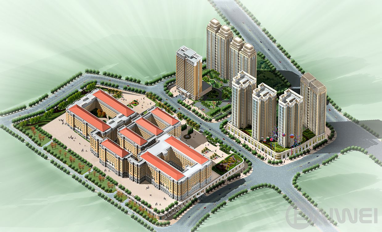 地塊A、B主樓主要采用明亮的淺暖色調(diào)及豎向線條的落地窗,與在建的銀都財(cái)富中心相協(xié)調(diào),裙房商業(yè)采用淺色與深色石材相間,并以歐式壁柱點(diǎn)綴,外觀簡潔明快,同時(shí)與現(xiàn)有毓璜頂醫(yī)院建筑適當(dāng)?shù)暮魬?yīng)。地塊C延續(xù)了原有毓璜頂醫(yī)院的外觀風(fēng)格,主要以磚紅色面磚及灰色石材飾面,同樣采用了歐式裝飾柱與老建筑相呼應(yīng),使新老醫(yī)院建筑渾然一體。