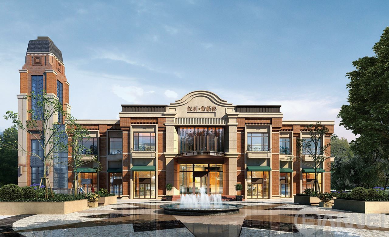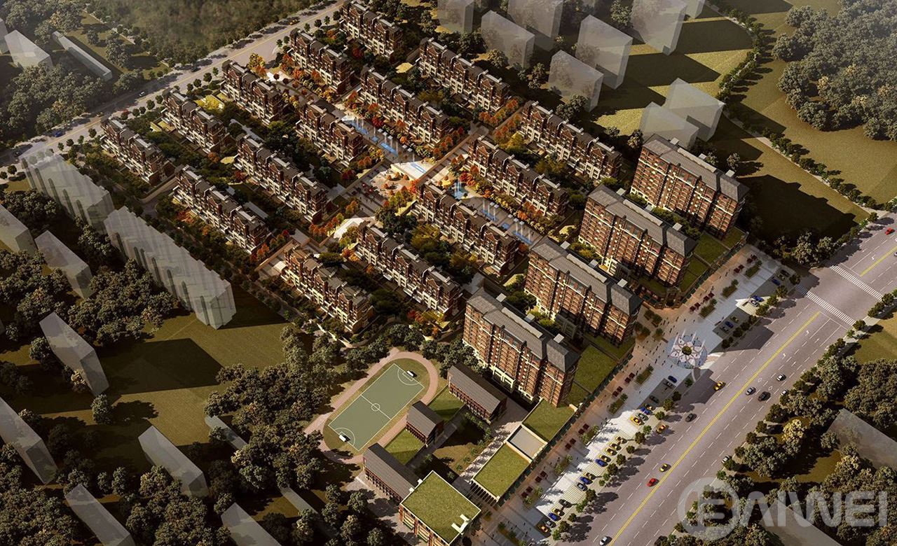 本項目住宅主要為4棟13層小高層公寓,以及15 棟5?6層多層洋房。立面整體采用美式褐石風格,立面以褐色磚面及石材為主,真石漆勾勒門庭和建筑線條,透過深淺明暗,表現(xiàn)其豐富的歷史痕跡與渾厚的文化底蘊。整體追求高貴、典雅、端莊,以其優(yōu)雅、唯美的姿態(tài),平和而富有內(nèi)涵的氣韻,描繪出居室主人高雅的身份。