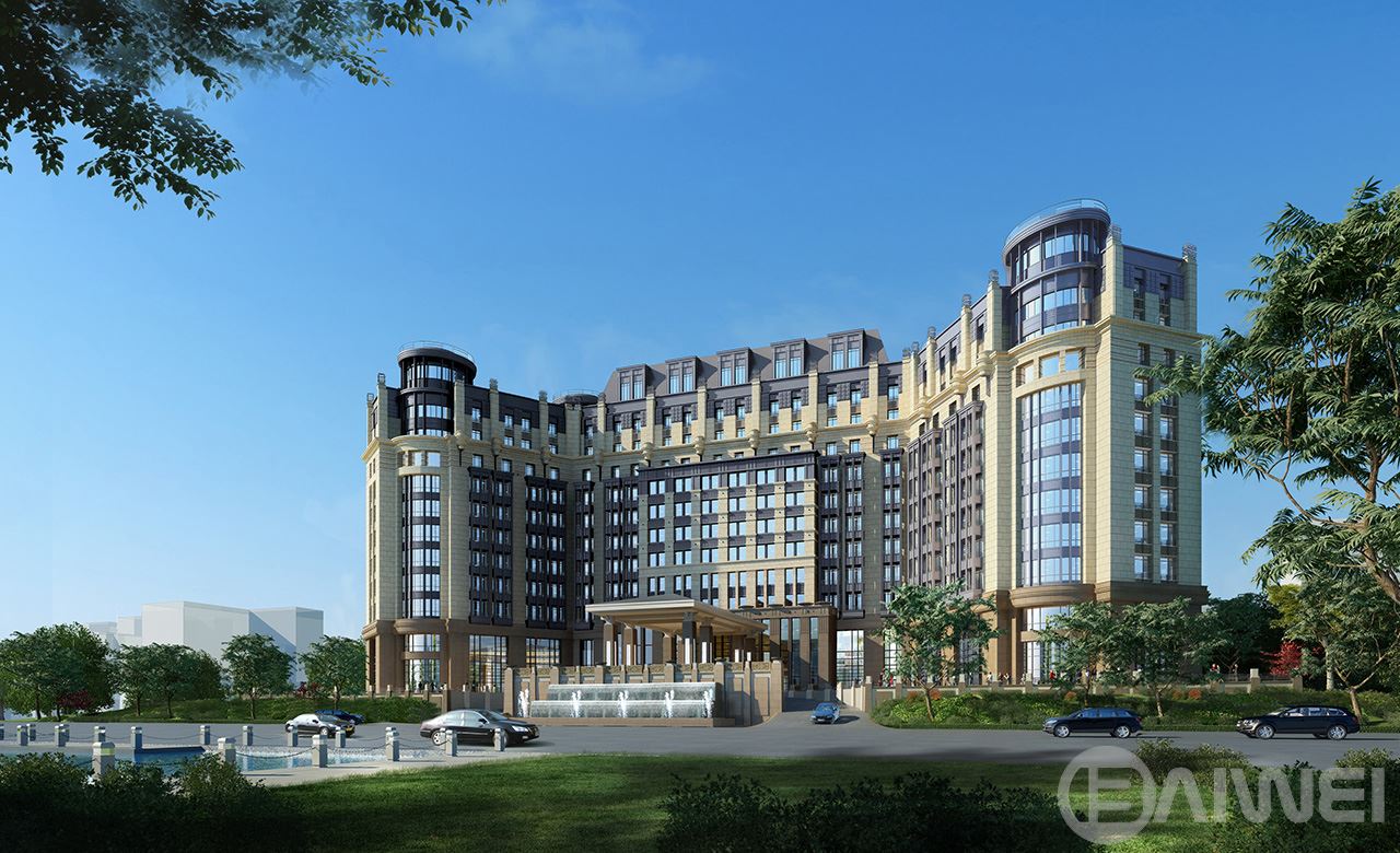 建設內容包括1棟11層五星級酒店,8棟15~28層商住樓,3棟3~4層商業(yè)、2棟4層度假酒店樓,3棟2層酒店客房樓,2棟地下車庫,共19個單位工程。