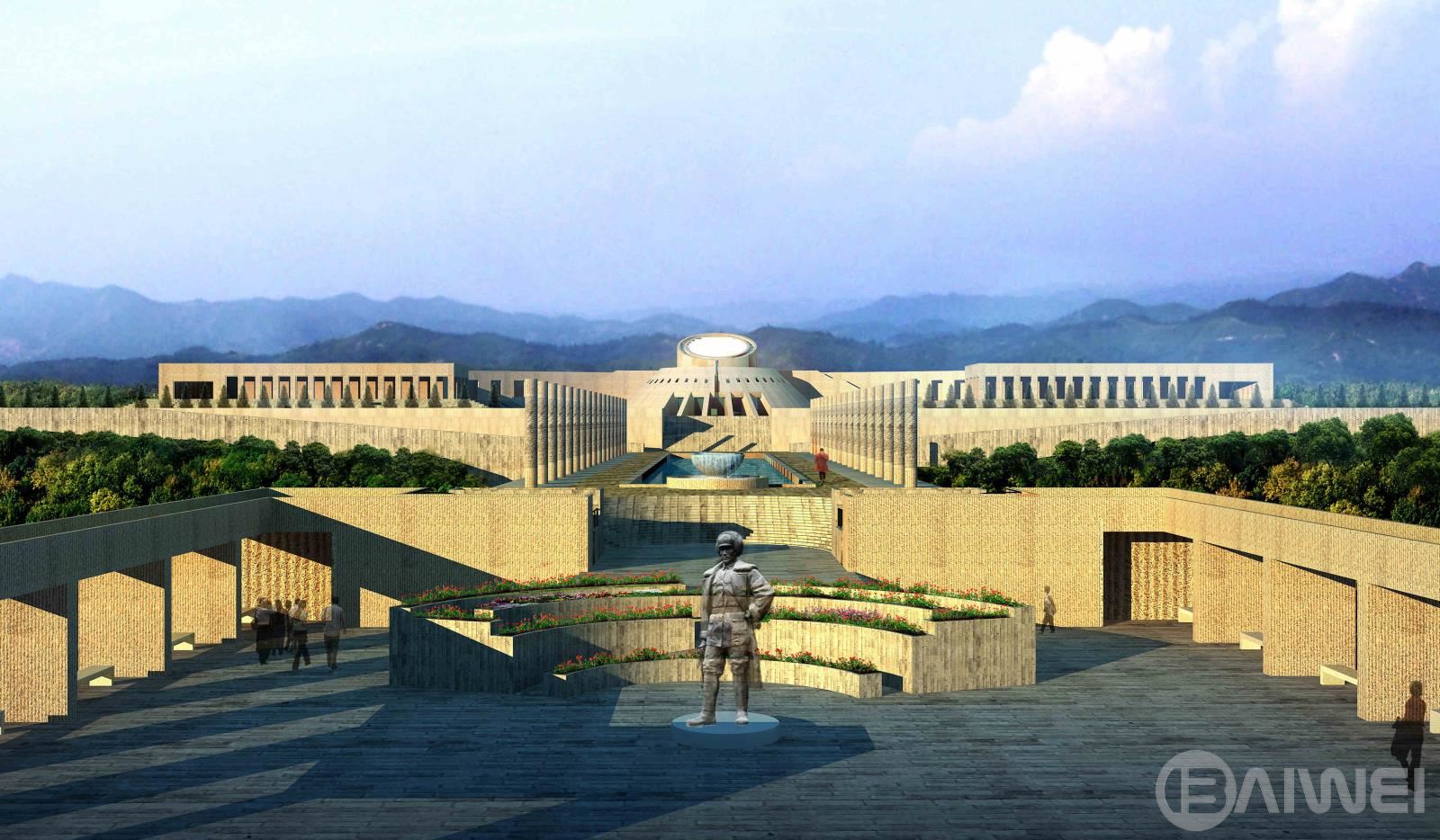 本項(xiàng)目設(shè)計(jì)吸收了國(guó)內(nèi)外陵園建筑和祭祀建筑的可借鑒的因素,把設(shè)計(jì)的重點(diǎn)放在軸線,序列和節(jié)奏的變化上。主要的軸線 安排在現(xiàn)有的通向紀(jì)念碑的五百米長(zhǎng)的道路的位置上,依次展開入口廣場(chǎng)—追思大道—楊子榮廣場(chǎng)—思源之路—紀(jì)念廣場(chǎng) —紀(jì)念館4觀景臺(tái)4紀(jì)念林4烈士墓等內(nèi)容。