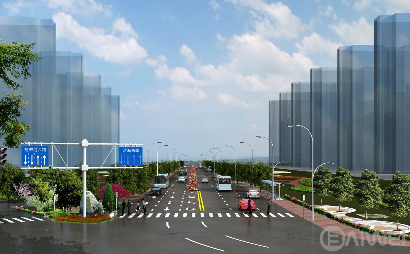 濱海西路位于煙臺(tái)市芝罘區(qū)芝罘島西部,本次設(shè)計(jì)范圍為:海景大道與芝罘島西路交叉口為起點(diǎn),向南依次穿過商住地塊B、C、D、E、F,至污水處理場(chǎng)門口,全長(zhǎng)1600米。道路橫斷面型式:道路紅線寬度23米,路中設(shè)置3米寬中間分隔帶,兩側(cè)分別設(shè)置7.0寬快車道,3.0米人行道,同時(shí)在兩側(cè)城市綠化帶內(nèi)結(jié)合景觀設(shè)計(jì)設(shè)置2.5米寬自行車道。
