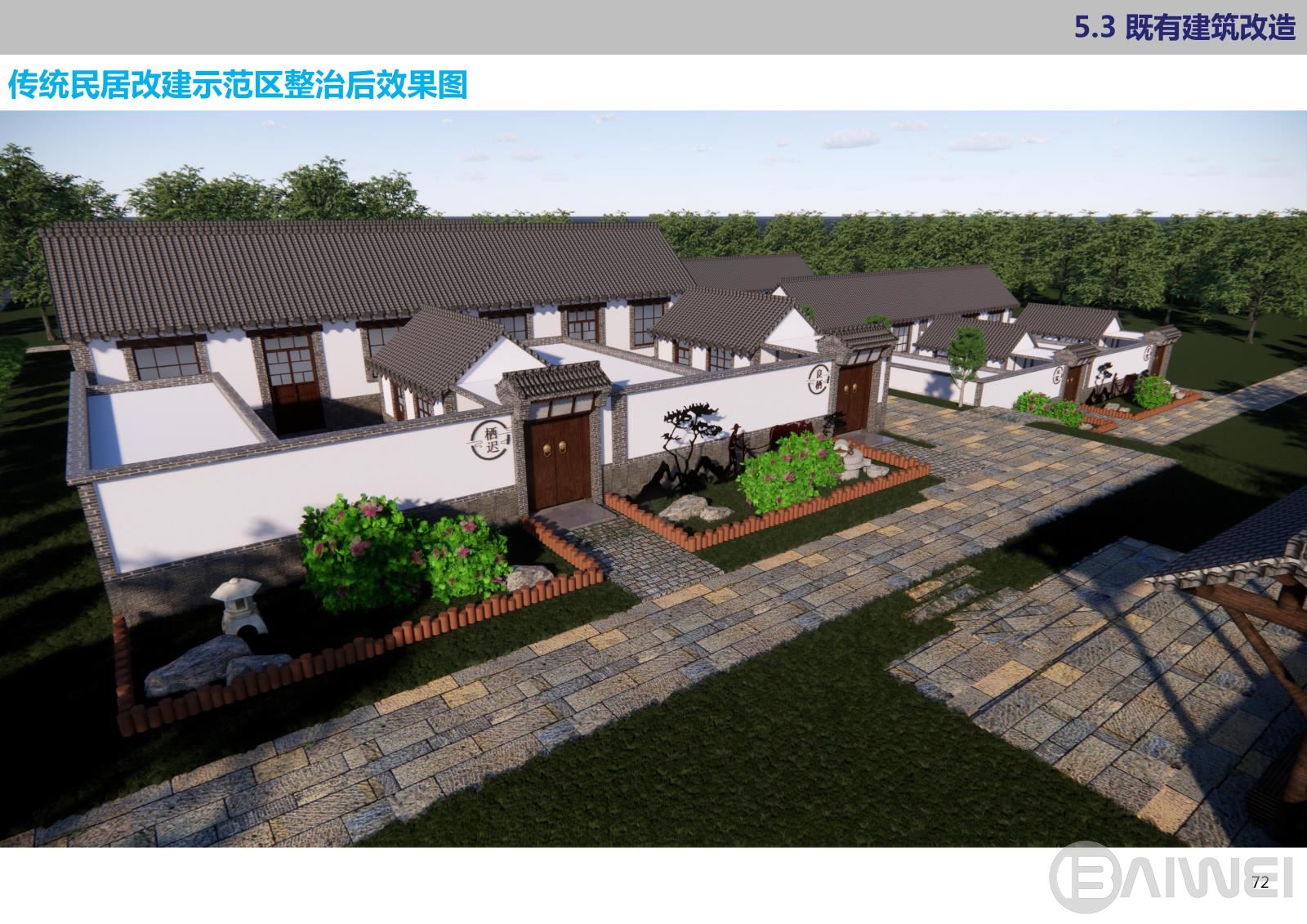 規(guī)劃針對原有建筑進(jìn)行修繕。其中,社會主義新農(nóng)村住宅,保留原有建筑體量,保留原有形態(tài),保留現(xiàn)有建筑元素與形式基礎(chǔ)上進(jìn)行修補(bǔ),僅針對建筑外立面進(jìn)行修繕,提升改善人居環(huán)境;傳統(tǒng)民居,按照修舊如舊原則,還原傳統(tǒng)民居的建筑特色,對閑置民居進(jìn)行功能置換,將其改建為鄉(xiāng)村民宿;工業(yè)廠房,對廢舊工業(yè)廠房進(jìn)行建筑更新改造,將其改建為超市、騎行驛站,為鄉(xiāng)村建筑帶來現(xiàn)代氣息。